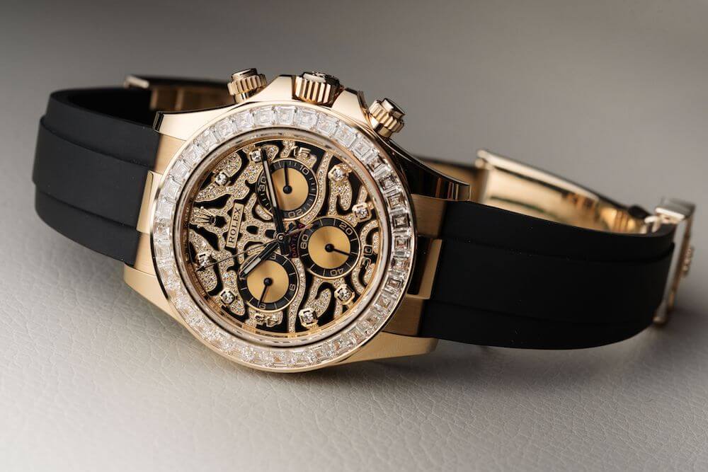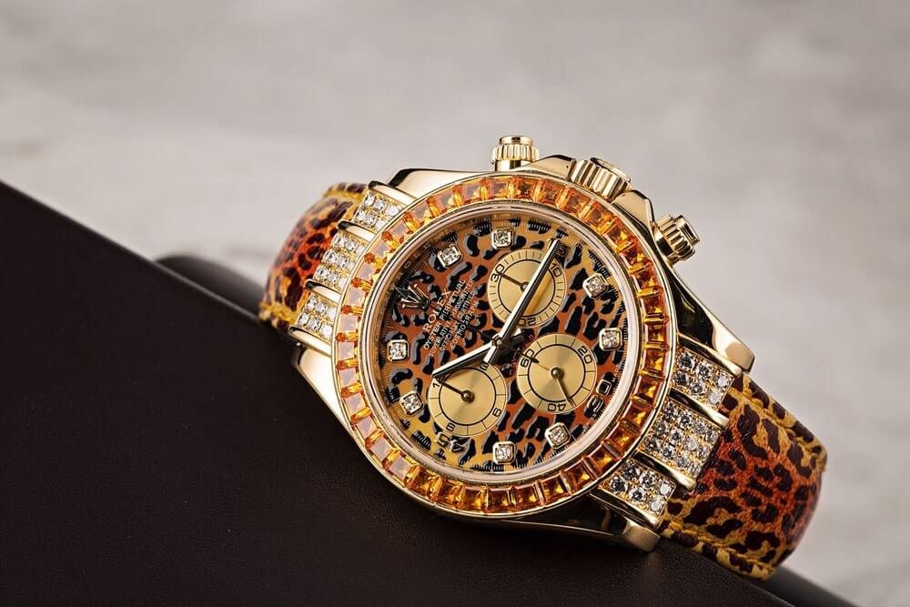 В 2004 году компания выпустила широко обсуждаемый Daytona Leopard ref. 116598 SACO. Корпус этих часов изготовлен из желтого золота, безель украшен сапфирами коньячного цвета. Но не это сделало часы такими исключительными, а циферблат и ремешок с леопардовым дизайном. В признании этой модели не было среднего уровня: часы либо нравились, либо нет. В этом году Rolex выпустил преемника этой модели часов. Дизайн по-прежнему леопардовый, но подход выбран более тонкий. Самым значительным изменением стал черный браслет Oysterflex, который акцентирует внимание на циферблате. Это существенная разница с ref. 116598 SACO, где уникальный ремешок усилил тему леопарда и, возможно, перенасытил ее.